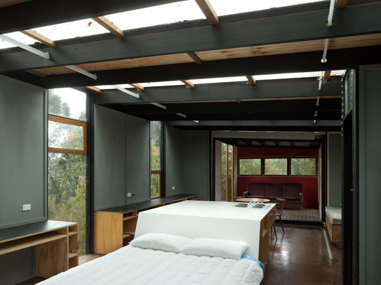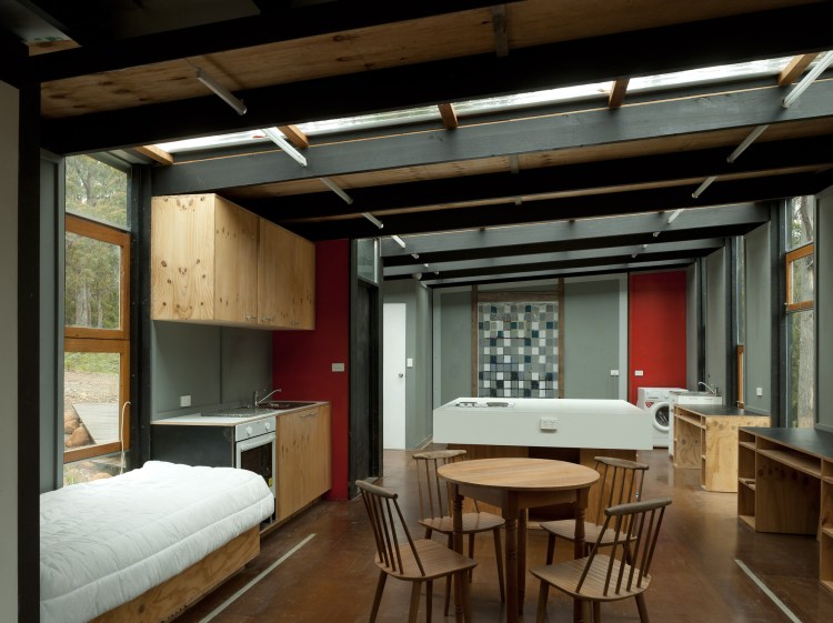 It was designed by architect Drew Heath, a light box based on the scale of a shipping container. Movement and mobilities were implicit in the design while it responded to the bush location immersed in the site at Adventure Bay.