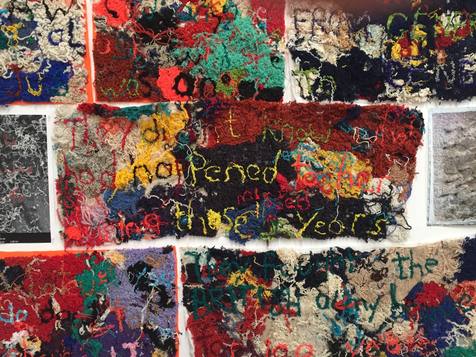 Image above: Elizabeth Day, Invisible Words Invisible Worlds: They don’t know what happened to her during those years, 2018, unraveled wool, felt, muslin. Photo: Alex Balding. Image courtesy and © the artist.