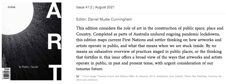 The full Artlink issue 41:2 can be accessed here. The article by Aarna Fitzgerald Hanley can be accessed in full here.