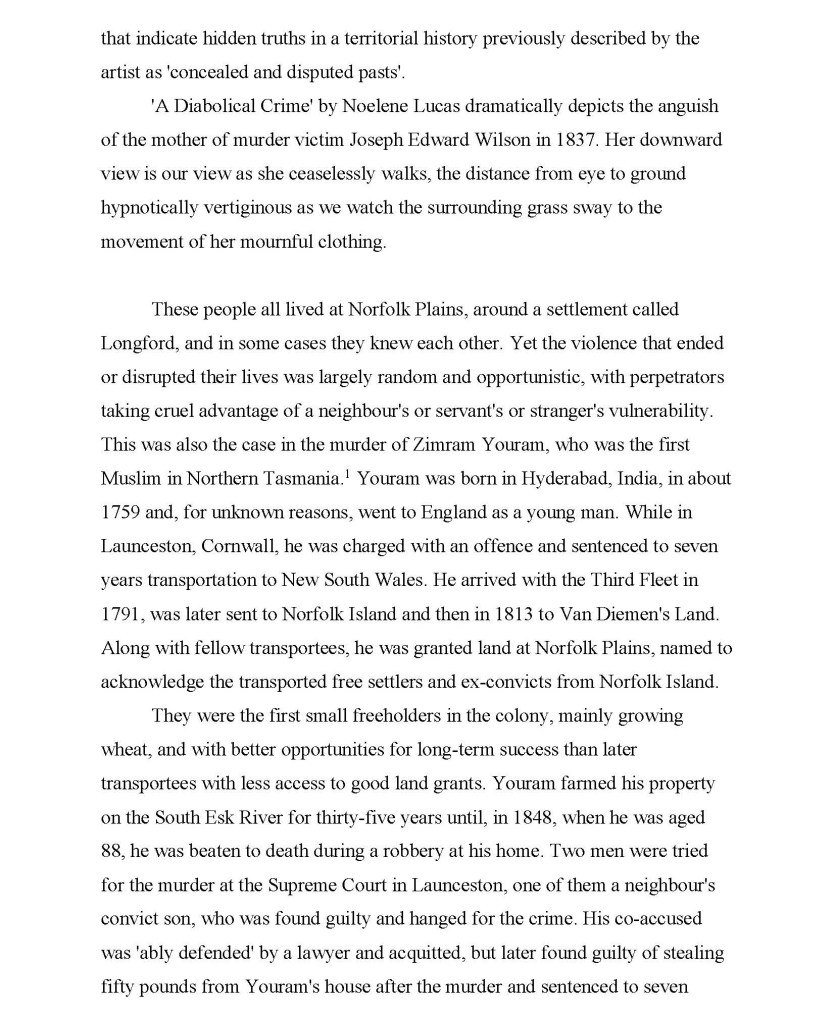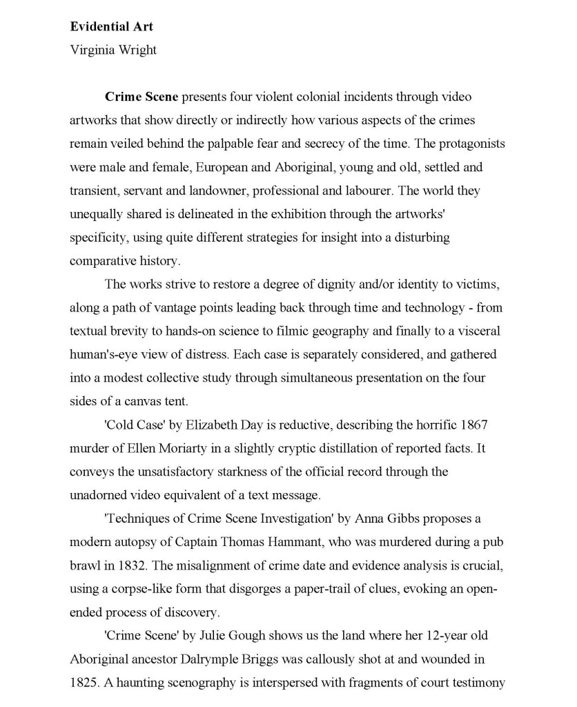 Review of The Longford Project: Crime Scene, exhibition presented in Longford Town Hall, TAS, as part of the 2019 Ten Days on the Island festival, 15-17 Mar 2019.