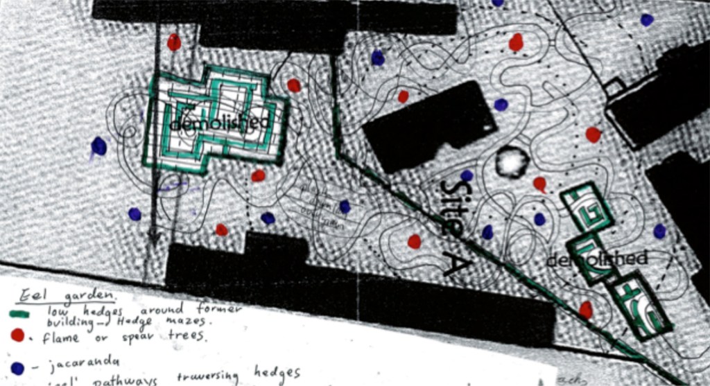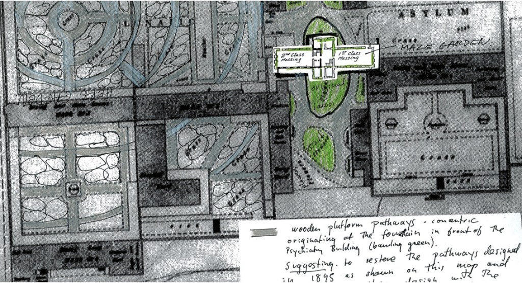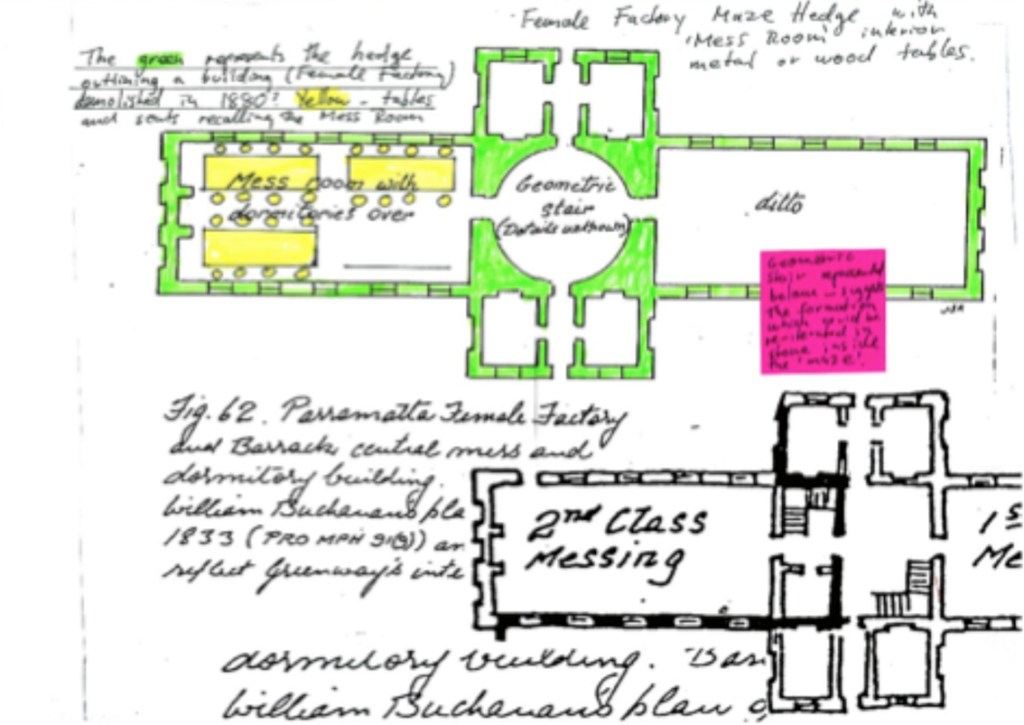 NOTE: As part of her involvement in the founding activities of the Parramatta Female Factory Project, Elizabeth Day developed detailed drawings and plans for a memorial garden in the grounds of the former Parramatta Girls Home, and cultivated extensive grass roots castings.