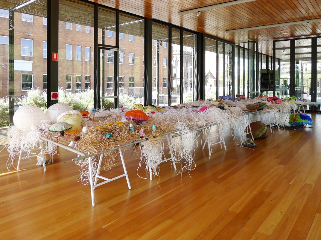 This exhibition presented an installation by Elizabeth Day of the evolving participatory project Myco Logic, whose inception was in Kandos, NSW, as part of Cementa15. Day extended this project through a community arts program she facilitated at Cumberland Hospital. The exhibition in Parramatta Justice Precinct’s Heritage Courtyard Pavilion presents artwork aggregated from community workshops at Cumberland Hospital and previous iterations of Myco Logic. MORE…
