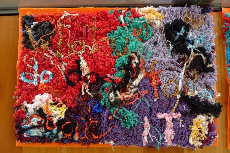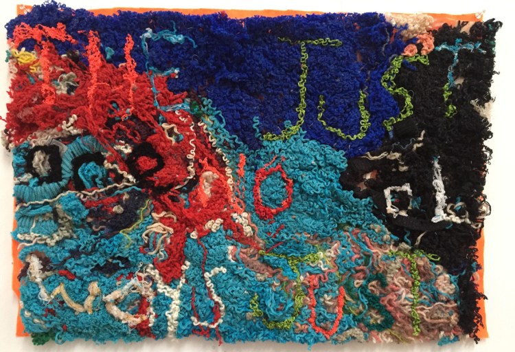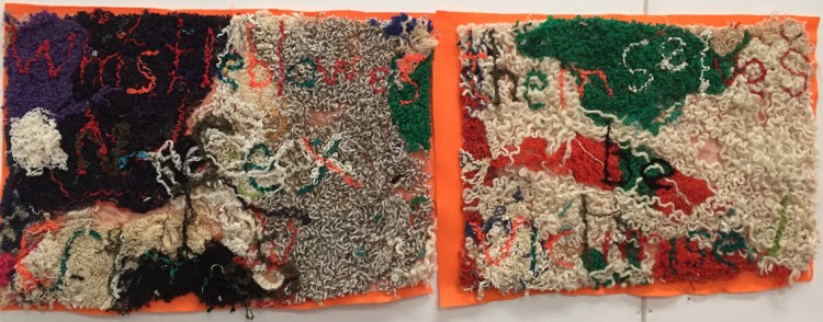 Elizabeth Day, Invisible Words Invisible Worlds: Whistleblowers on sex crimes can themselves victimised, 2017, unravelled wool, muslin, felt. Image: Liz Day.