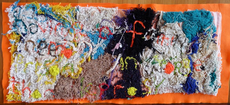 Elizabeth Day, Invisible Words Invisible Worlds: He knew that abuse was going on but wasn’t that interested, 2017, unravelled wool, muslin, felt. Image: Liz Day.