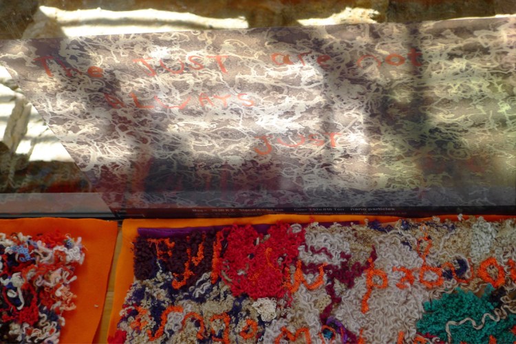 Elizabeth Day, Invisible Words Invisible Worlds: The just are not always just, 2017, unravelled wool, muslin, felt. Image: Liz Day.