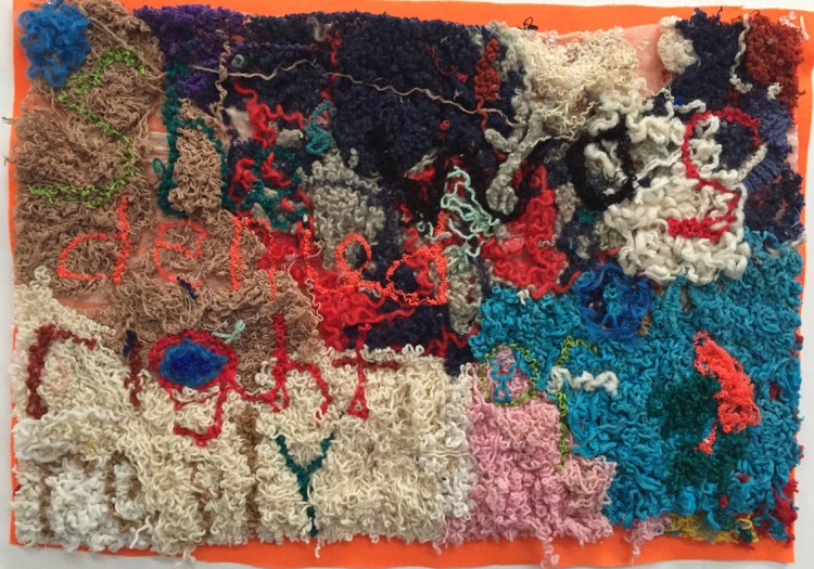 Elizabeth Day, Invisible Words Invisible Worlds: She was denied a right of reply, 2017, unravelled wool, muslin, felt. Image: Liz Day.