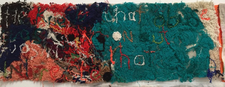 Elizabeth Day, Invisible Words Invisible Worlds: Shame can be very debilitating, 2017, detail, unravelled wool, muslin, felt. Image: Claire Taylor/GREYSPACE.