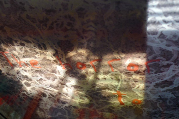 Invisible Words Invisible Worlds, solo exhibition in the closed section of the Heritage Courtyard Pavilion alongside the exhibition Everything is Connected with Everything Else: Myco Logic, in the main open section. 14 – 21 Oct and 25 Nov – 3 Dec 2017. Curated by Claire Taylor. Heritage Courtyard Pavilion, Parramatta Justice Precinct, Parramatta.