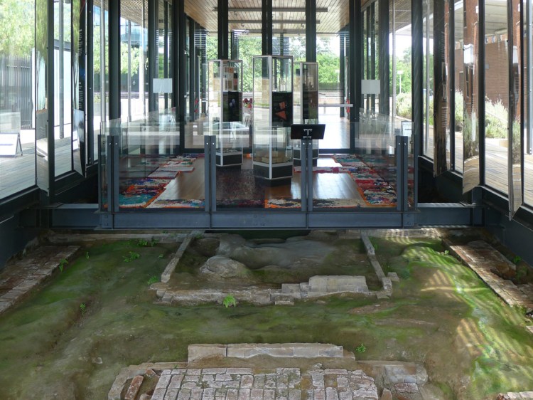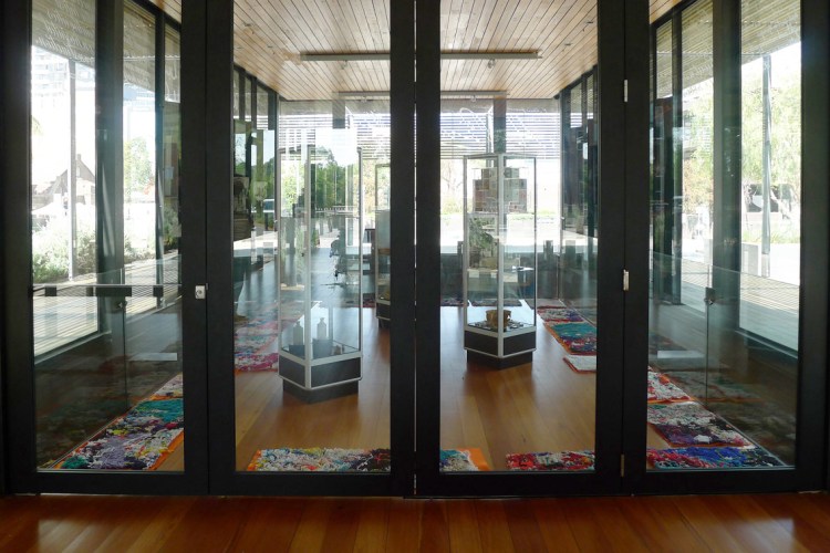 Elizabeth Day, Invisible Words Invisible Worlds, 2017, installation view at the Heritage Courtyard Pavilion, Parramatta Justice Precinct (works installed in closed section of the pavilion on the floating platform over the archaeological dig exposed footings of the former Colonial Hospital’s women’s ward). Image: Claire Taylor/GREYSPACE.