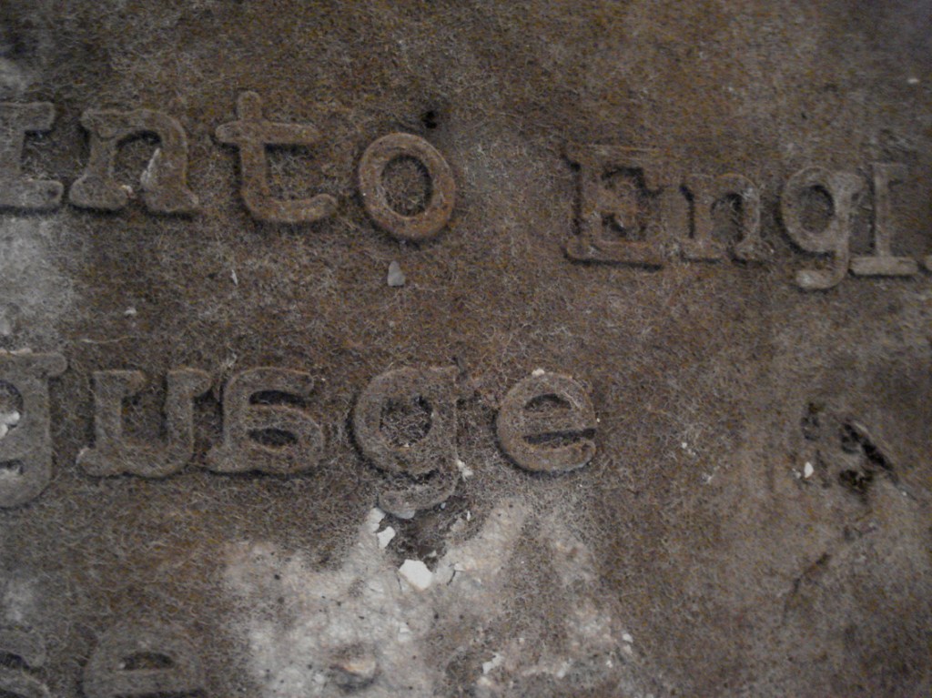 Elizabeth Day, Liverpool/Liverpool: The Skin of Translation, 2010, detail of installation at Casula Powerhouse Arts Centre, Liverpool, NSW. The text in this detail is based on the poem Emigré by Sarah Day, Elizabeth Day’s sister. Photo: Ian Hobbs.