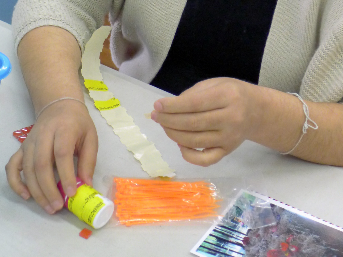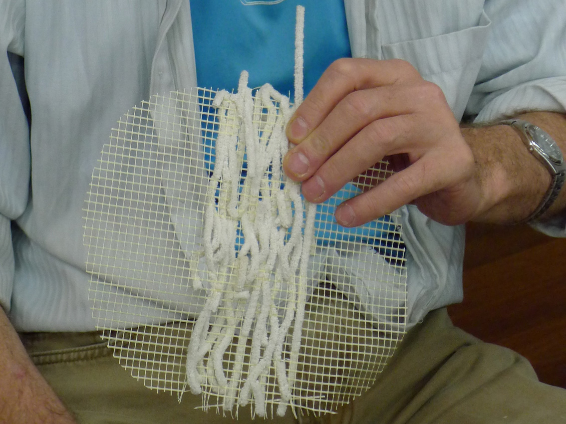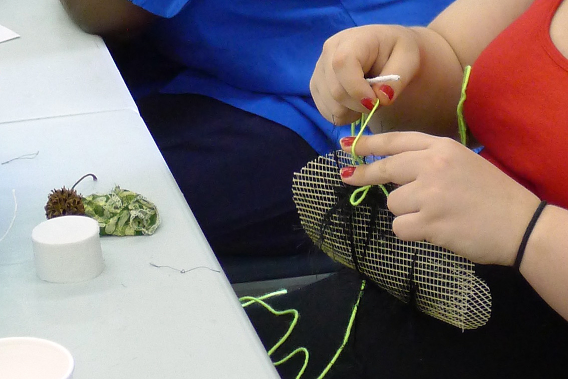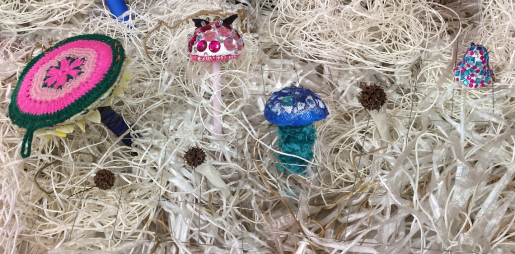 WORKSHOPS – The arts program was facilitated by visual artist Elizabeth Day. In group sessions, Day demonstrated how anything can be used to ‘draw’ fungi in three dimensions. Workshops were based around visual story-telling and skills sharing. Participants were encouraged to draw on skills they already had and leadership for skills sharing sought from within the groups.