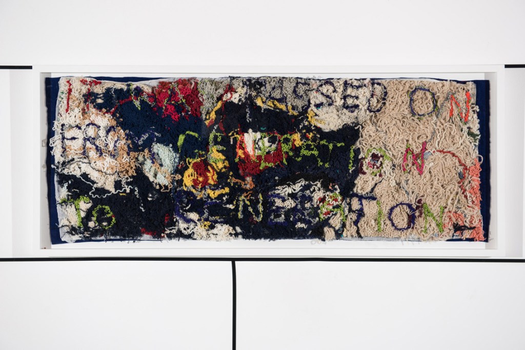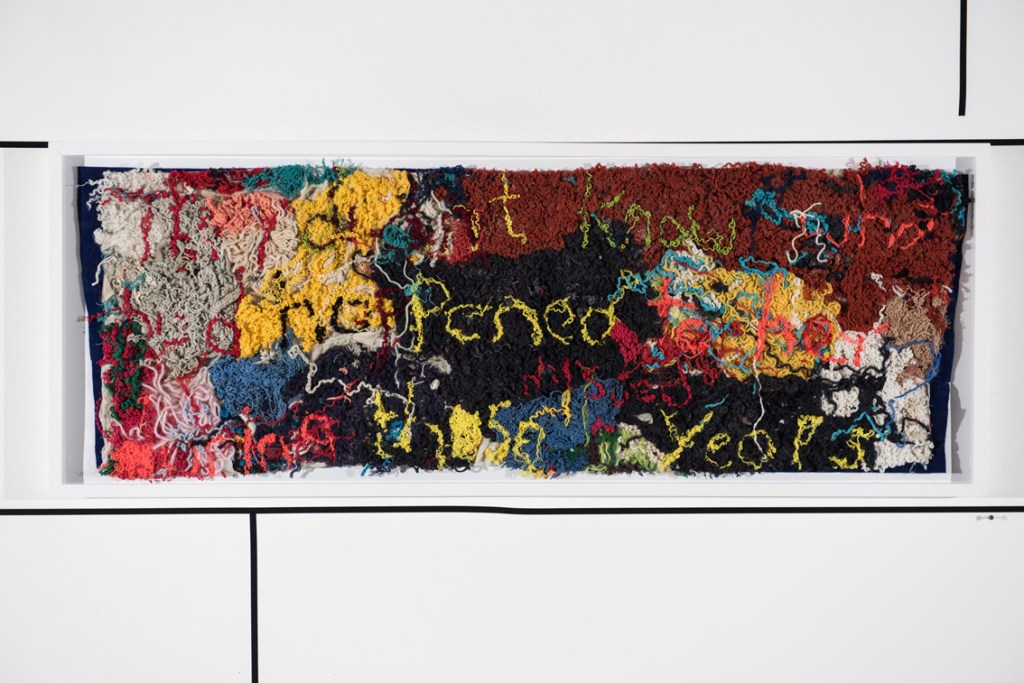 Elizabeth Day, Working in the Trouble: The Prison Wall on the Road to Parramatta, 2019, installation view. Articulate Project Space, Sydney. Photo: Hamish Ta-mé.Elizabeth Day, Working in the Trouble: The Prison Wall on the Road to Parramatta, 2019, installation view. Articulate Project Space, Sydney. Photo: Hamish Ta-mé.Elizabeth Day, Working in the Trouble: The Prison Wall on the Road to Parramatta, 2019, installation view. Articulate Project Space, Sydney. Photo: Hamish Ta-mé.Elizabeth Day, Invisible Words Invisible Worlds: They don’t know what happened to her during those years, 2018, unravelled wool, felt, muslin, framed. Photo: Hamish Ta-mé.Elizabeth Day, Invisible Words Invisible Worlds: They fought the British Army bravely for 100 years, 2018, unravelled wool, felt, muslin, framed. Photo: Hamish Ta-mé.Elizabeth Day, Invisible Words Invisible Worlds: He knew that abuse was going on but wasn’t that interested, 2017, unravelled wool, felt, muslin, framed. Photo: Hamish Ta-mé.Elizabeth Day, Invisible Words Invisible Worlds: Untitled, 2019, framed digital print. Photo: Hamish Ta-mé.Elizabeth Day, Invisible Words Invisible Worlds: The damage was passed on from generation to generation, 2016-17, framed digital print, altered electron microscopy image. Photo: Hamish Ta-mé.Elizabeth Day, Invisible Words Invisible Worlds: Whatever you do don’t talk about it, 2017, unravelled wool, felt, muslin, framed. Photo: Hamish Ta-mé.Elizabeth Day, Invisible Words Invisible Worlds: The just are not always just, 2017, unravelled wool, felt, muslin, framed. Photo: Hamish Ta-mé.Elizabeth Day, Invisible Words Invisible Worlds: History tends to repeat itself, 2017, unravelled wool, felt, muslin, framed. Photo: Hamish Ta-mé.Elizabeth Day, Invisible Words Invisible Worlds: The just are not always just, 2016-17, framed digital print, altered electron microscopy image. Photo: Hamish Ta-mé.Elizabeth Day, Invisible Words Invisible Worlds: Justice entails acknowledgement, recognition and loving attention to detail, 2016-17, framed digital print, altered electron microscopy image. Photo: Hamish Ta-mé.Elizabeth Day, Invisible Words Invisible Worlds: Untitled, 2019, framed digital print. Photo: Hamish Ta-mé.Elizabeth Day, Invisible Words Invisible Worlds: Untitled, 2019, framed digital print. Photo: Hamish Ta-mé.Elizabeth Day, Invisible Words Invisible Worlds: Shame can be very debilitating, 2017, unravelled wool, felt, muslin, framed. Photo: Hamish Ta-mé.Elizabeth Day, Invisible Words Invisible Worlds: Untitled 2019, framed digital print. Photo: Hamish Ta-mé.Elizabeth Day, Invisible Words Invisible Worlds: Untitled, 2019, framed digital print. Photo: Hamish Ta-mé.Elizabeth Day, Invisible Words Invisible Worlds: Did anyone ask why she was angry?, 2017, unravelled wool, felt, muslin, framed. Photo: Hamish Ta-mé.Elizabeth Day, Invisible Words Invisible Worlds: untitled, 2017, unravelled wool, felt, muslin, framed. Photo: Hamish Ta-mé.Elizabeth Day, Invisible Words Invisible Worlds: The law is not always just, 2018, unravelled wool, felt, muslin, framed. Photo: Hamish Ta-mé.Elizabeth Day, Invisible Words Invisible Worlds: There is a reason beyond the reason beyond the reason beyond that reason, 2016-17, framed digital print, altered electron microscopy image. Photo: Hamish Ta-mé.Elizabeth Day, Invisible Words Invisible Worlds: It was passed on from generation to generation, 2017, unravelled wool, felt, muslin, framed. Photo: Hamish Ta-mé.Elizabeth Day, Invisible Words Invisible Worlds: Having a family member inside prison is worse than leprosy, 2017, unravelled wool, felt, muslin, framed. Photo: Hamish Ta-mé.Elizabeth Day, Invisible Words Invisible Worlds: Whistleblowers on sex crimes can themselves be victimised (part 1), 2017, unravelled wool, felt, muslin, framed. Photo: Hamish Ta-mé.